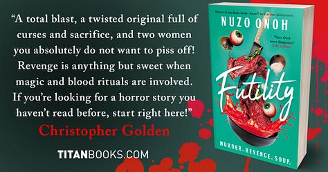 FUTILITY is out today, published by Titan Books. I will be in London, UK, celebrating the day at the Super-Relaxed Fantasy Club, giving a talk about the book and sharing laughs and endless glasses of pineapple juice. No cocktails this time; doctor’s order :( So, please join me in celebrating this latest achievement! Grab yourself a copy of FUTILITY and join me in this unhinged, horrific and wild journey.